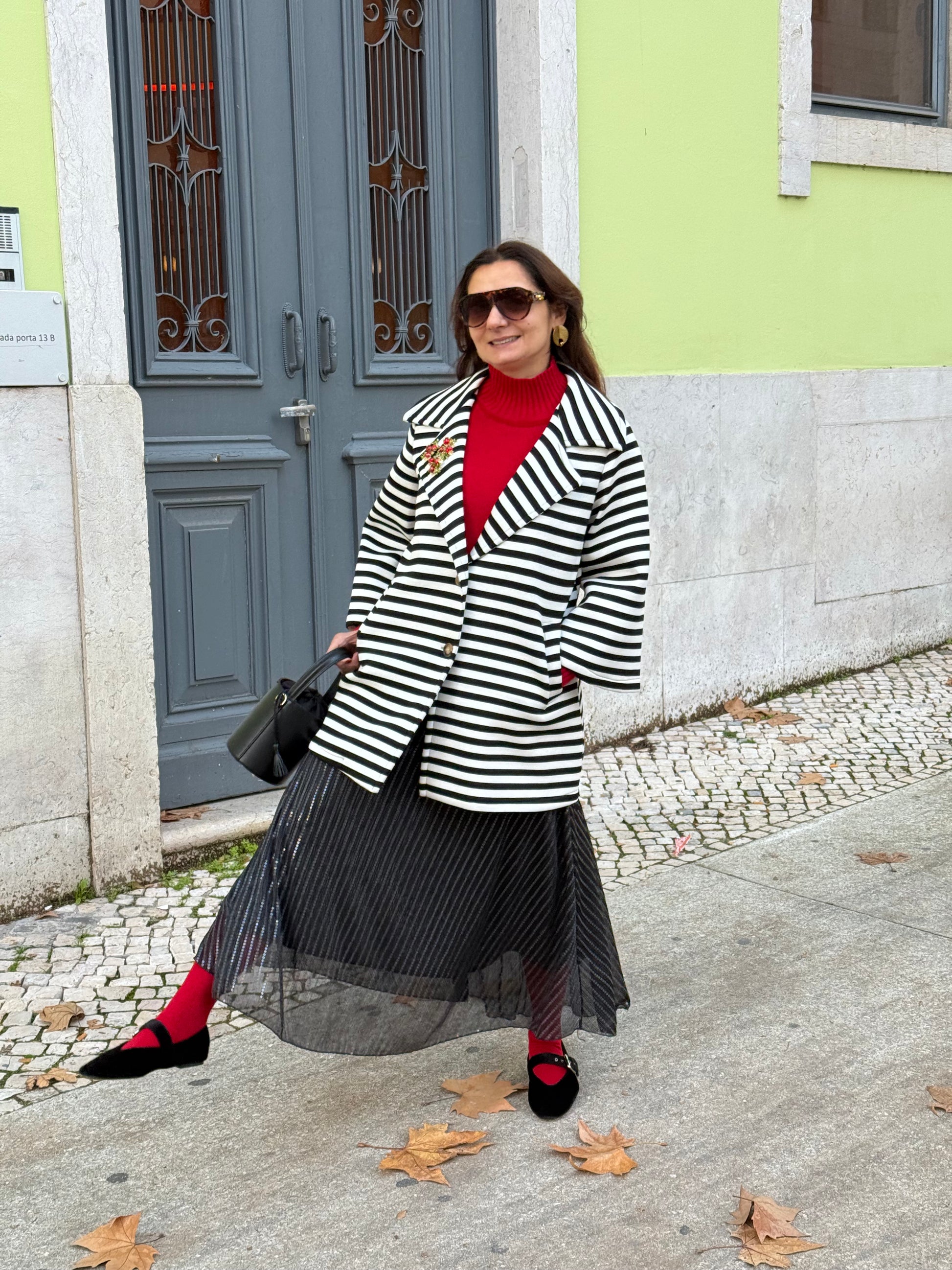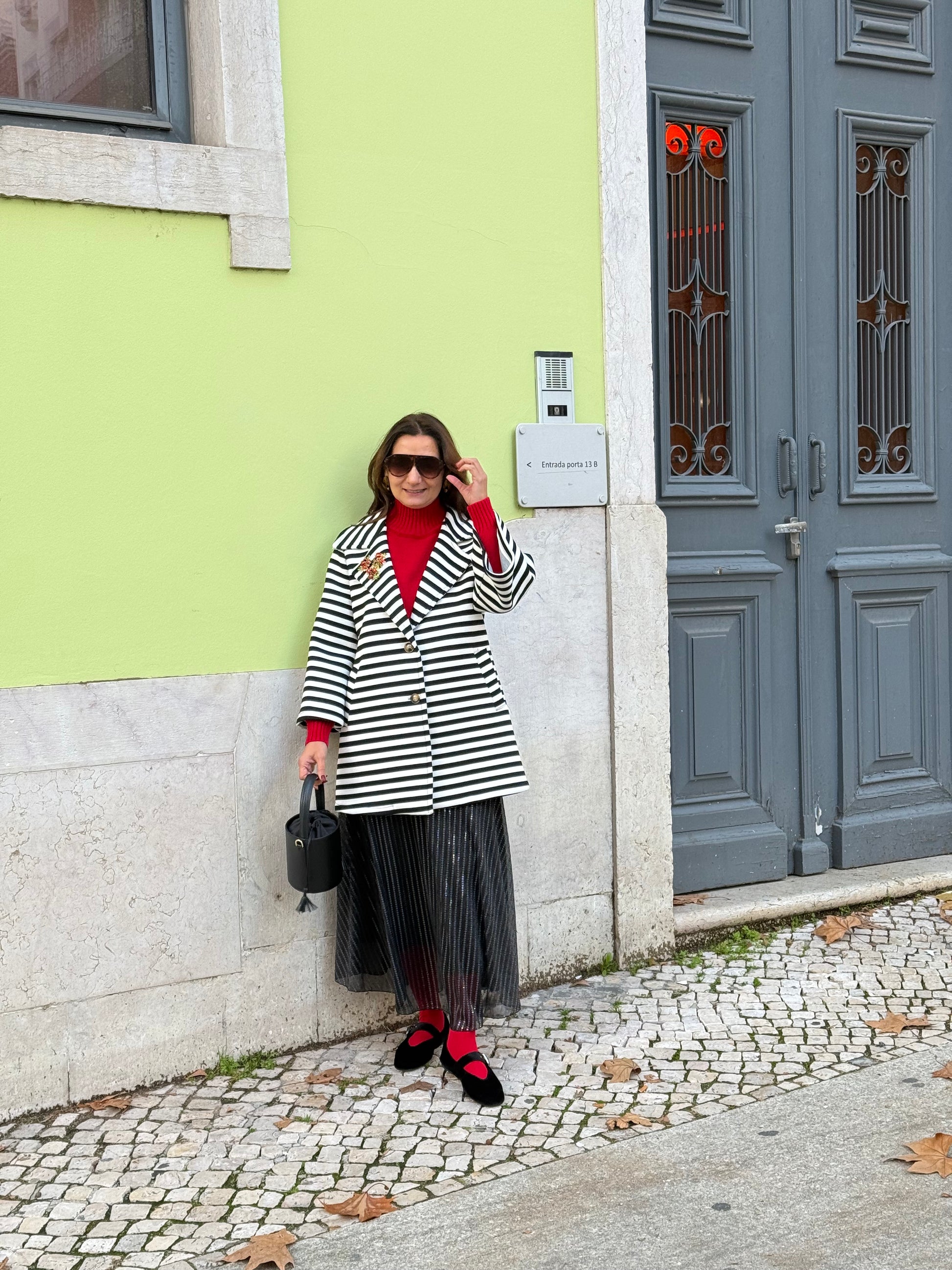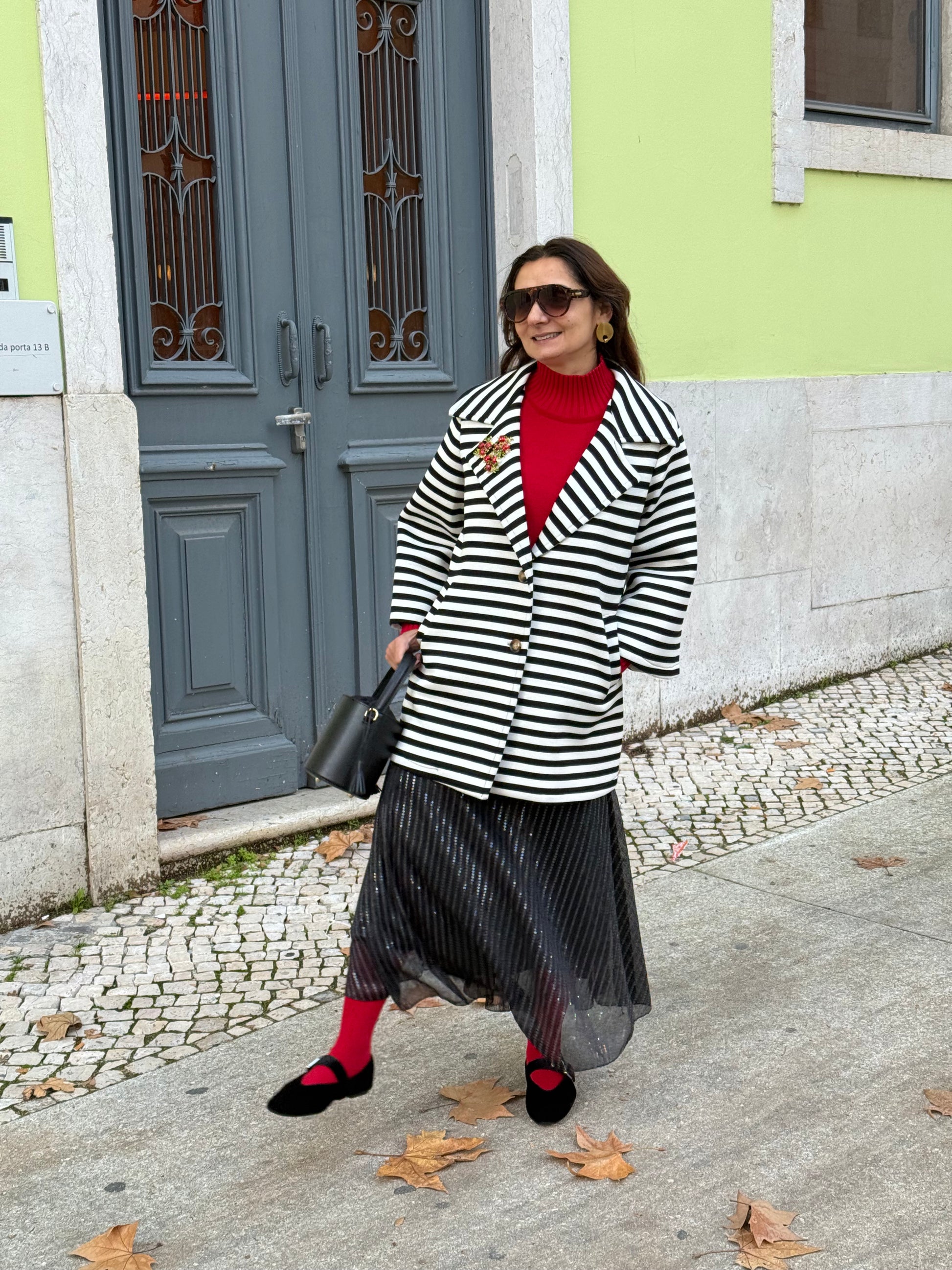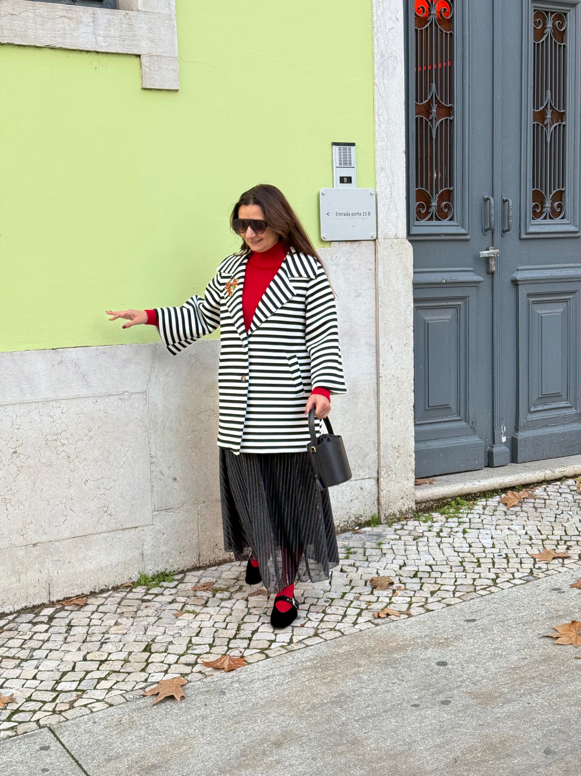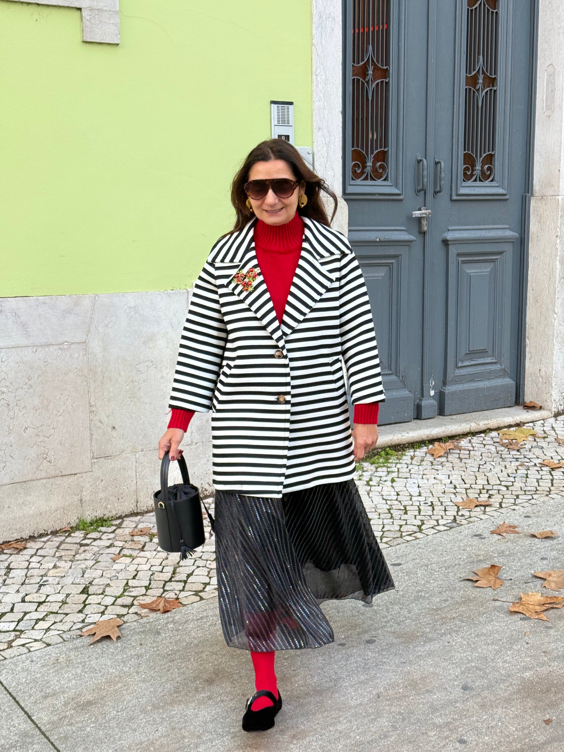 Casaco de riscas preto